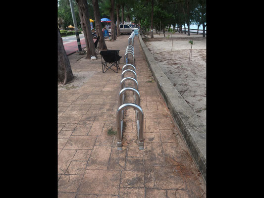 Überall gibt es Radlwege und auch Radlständer für tausende Radler – gesehen haben wir keinen einzigen. Und die Hinweisschilder der Thais für doofe Farang, faszinieren mich immer wieder.